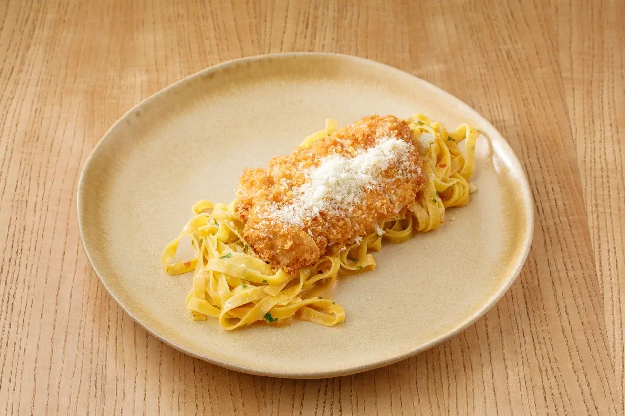 Два глазка, куриное филе с панировочных сухарях, два кусочка тартина, соус тартар, грибочки, помидорчики. Завтраки доступны к заказу до 14:00!